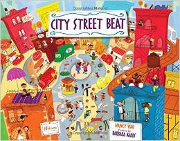 Two friends enjoy a busy day in a bustling city--seeing, hearing, smelling, tasting, and touching enhance their experience. "Listen to the three-piece band. / Shimmy to the sound." The lively urban environment offers music, dancing, trains, cafes, and more. The playful, onomatopoeia-heavy rhymed text extends the musical sentiment in the story, while bright, energetic illustrations feature small detailed figures.